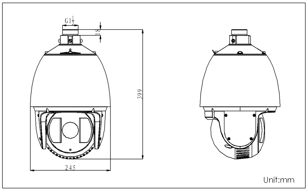 ? 內置熱處理裝置,降低球機內腔溫度,防止球機內罩起霧
