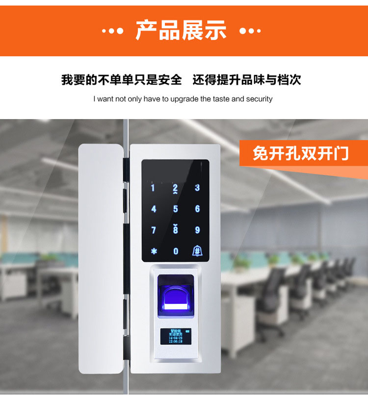 玻璃門指紋鎖密碼刷卡鎖免開孔、門禁系統(tǒng)帶遙控支持微信遠(yuǎn)程開門
